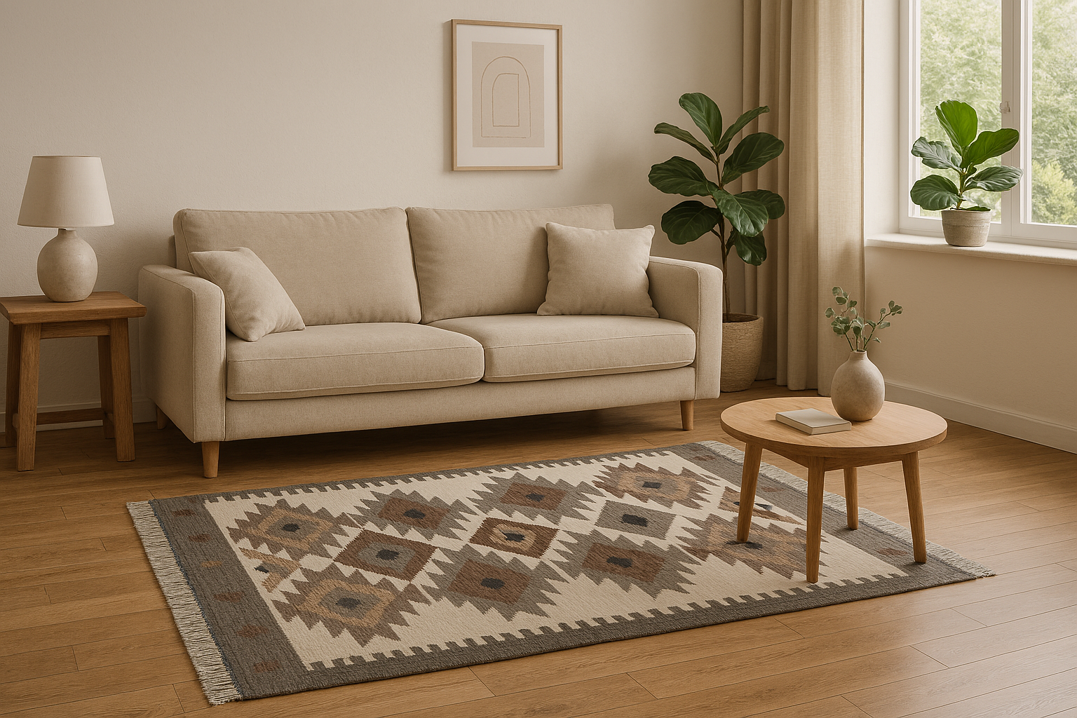 Handcrafted Dhurrie, Diamond Pattern Area Rug with Fringe, Grey and White Geometric Design, Living Room Carpet with Tassels, Size 4X6 feet
