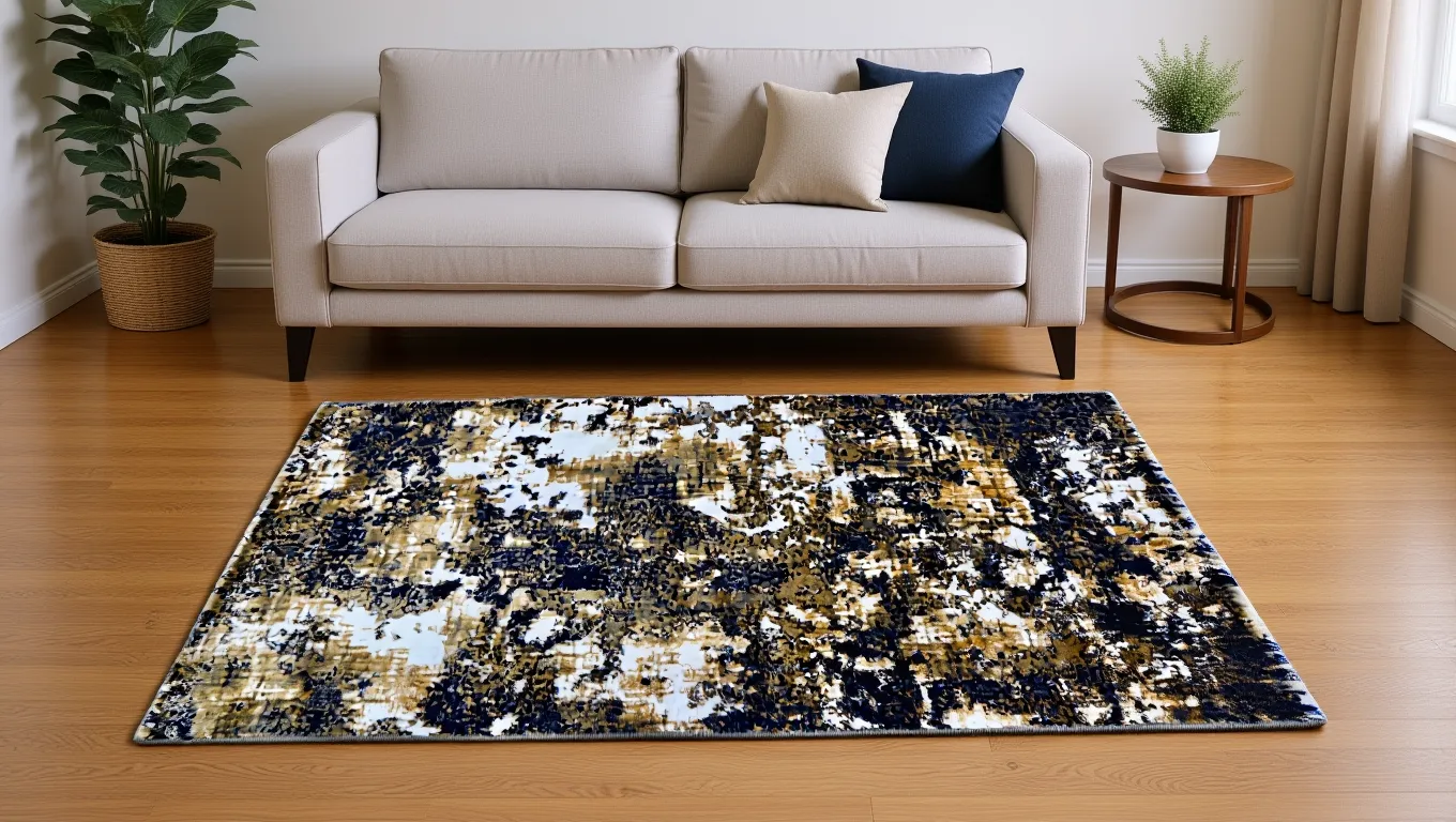 Modern Area Rug with Floral Pattern, Blue and Brown, Living Room Carpet with Non-Slip Backing-3X5