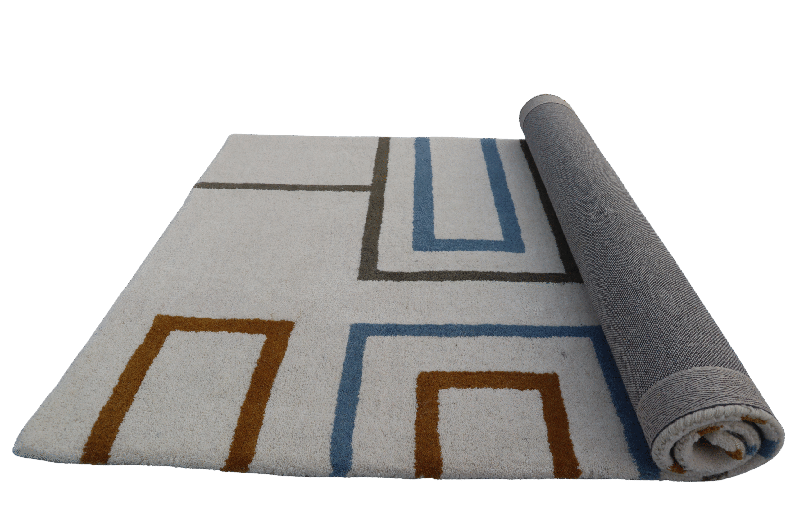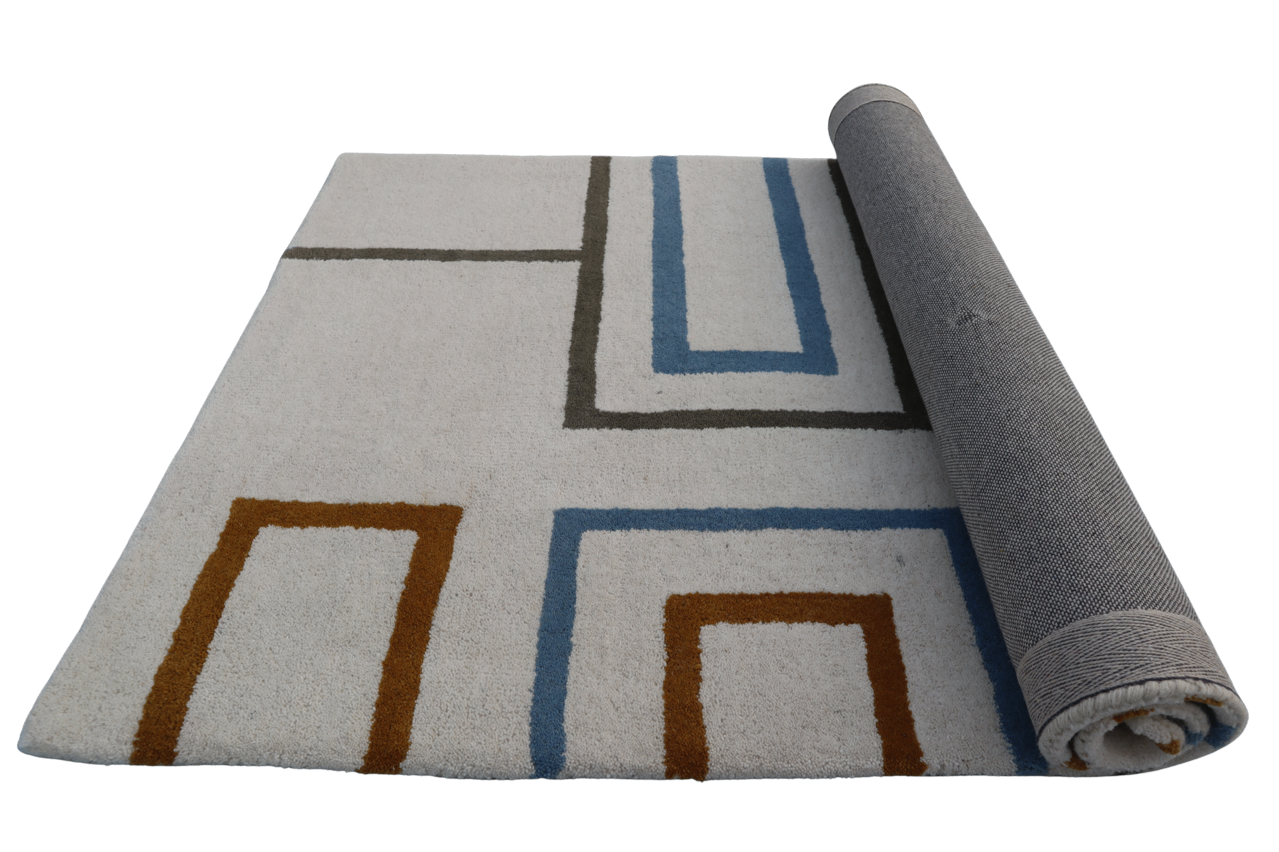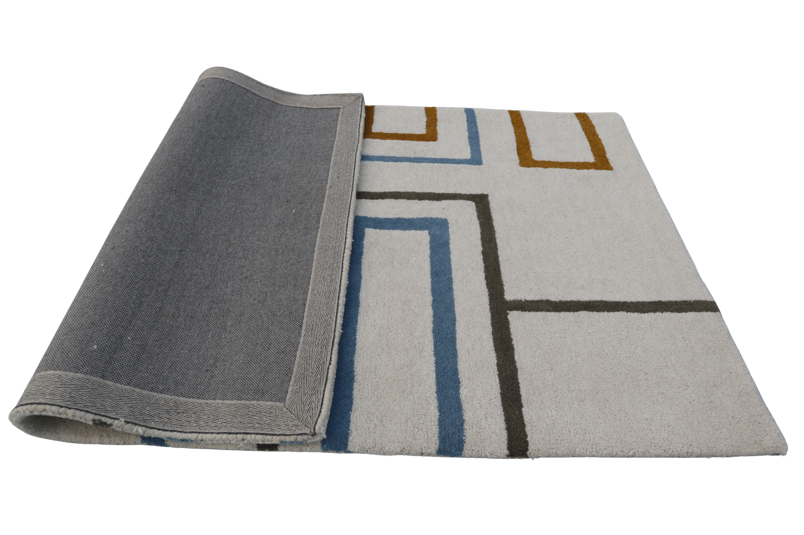Handcrafted Area Rug, White Grey with Blue Pattern, Tufted, Living Room Carpet, Size 4 * 6 Feet
